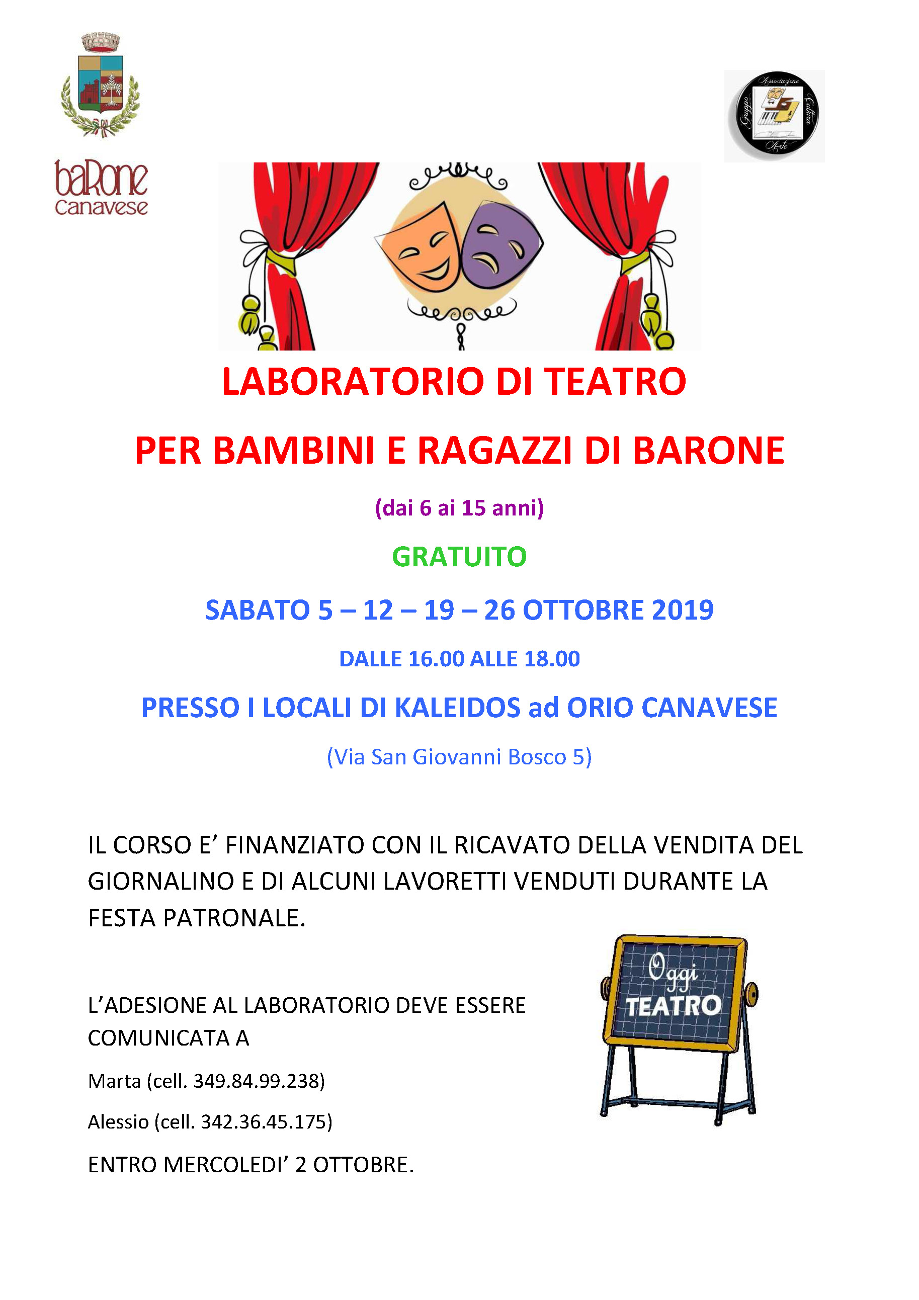 Descrizione Laboratorio di teatro gratuito per bambini e ragazzi di Barone Allegati Documenti Laboratorio di teatro gratuito per bambini e ragazzi di Barone [.jpg 619,45 Kb - 23/09/2019 - 25/09/2019] A cura di Servizi Demografici e Stato Civile Ultimo aggiornamento pagina: 25/09/2019 12:39:42