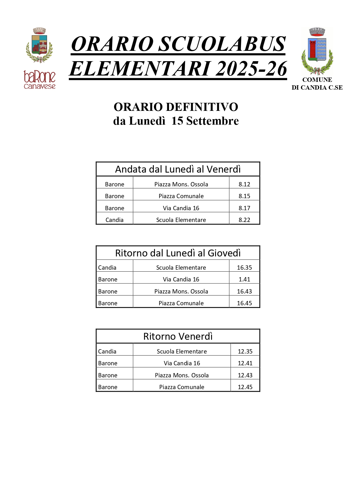 Descrizione Orario servizio scuolabus.Scuola PrimariaScuola Secondaria di Primo Grado Allegati Documenti Orario Scuola Primaria "DEFINITIVO" [.jpg 161,01 Kb - 04/09/2025 - 23/12/2025] Orario Scuola Secondaria di Primo Grado "DEFINITIVO" [.jpg 351,3 Kb - 04/09/2025] A cura di Servizi Amministrativi Ultimo aggiornamento pagina: 23/12/2025 08:09:25